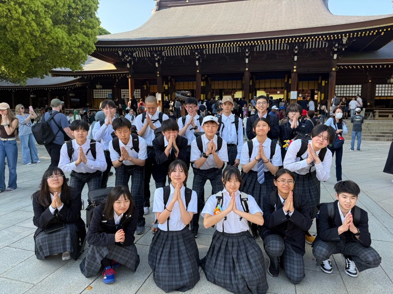 明治神宮で参拝後に、「なむなむポーズ」で!!